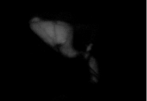 High contrast image of fluorescence displayed in grayscale.